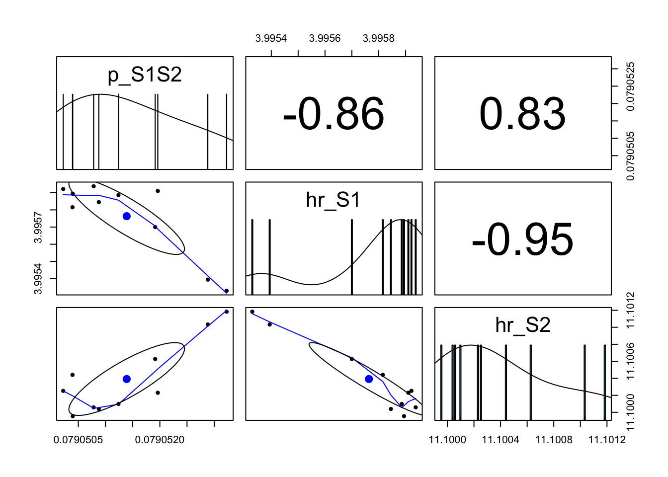 ### 09.02 Covariance matrix ---------------------------------------------------# Check if HESSIAN is Positive Definite; If not, make covariance # Positive Definite# Is Positive Definite?if (!is.positive.definite(-m_hess)) {print("Hessian is NOT Positive Definite") m_cov <-solve(-m_hess)print("Compute nearest positive definite matrix for COV matrix using `nearPD` function") m_cov <- Matrix::nearPD(m_cov)$mat} else{print("Hessian IS Positive Definite")print("No additional adjustment to COV matrix") m_cov <-solve(-m_hess)}
